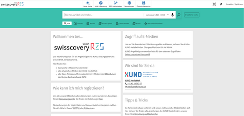 swisscovery RZS: Recherche nach allen Medien der Zentralschweizer Bibliotheken und teilweise kostenlose Bestellung an die XUND Mediothek möglich.