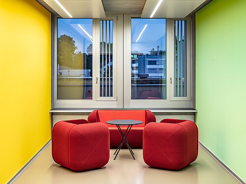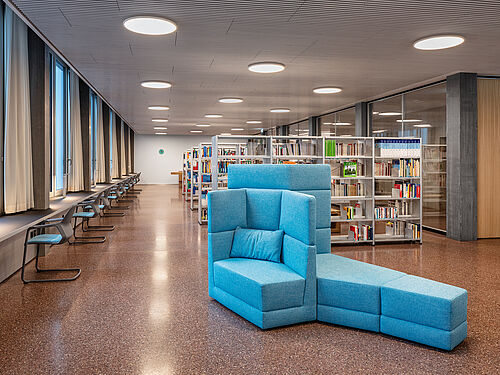 Sechs Lerninseln bieten den Studierenden Rückzugs- und Lernort in einem. Auf jeder Unterrichtsetage sind zwei angesiedelt, welche zum Atrium hin offen sind und mit ihrer unterschiedlichen Farbe in den Raum hinausstrahlen. Alle tragen je ein Wappen eines Zentralschweizer Kantons. Studierende haben die Lerninseln in einem partizipativen Prozess mitgestaltet. Die Lerninseln sollen einerseits Orte des individuellen und kollektiven Lernens, der Begegnung und des aktiven Austauschs sein, andererseits auch Orte der Ruhe und Erholung.