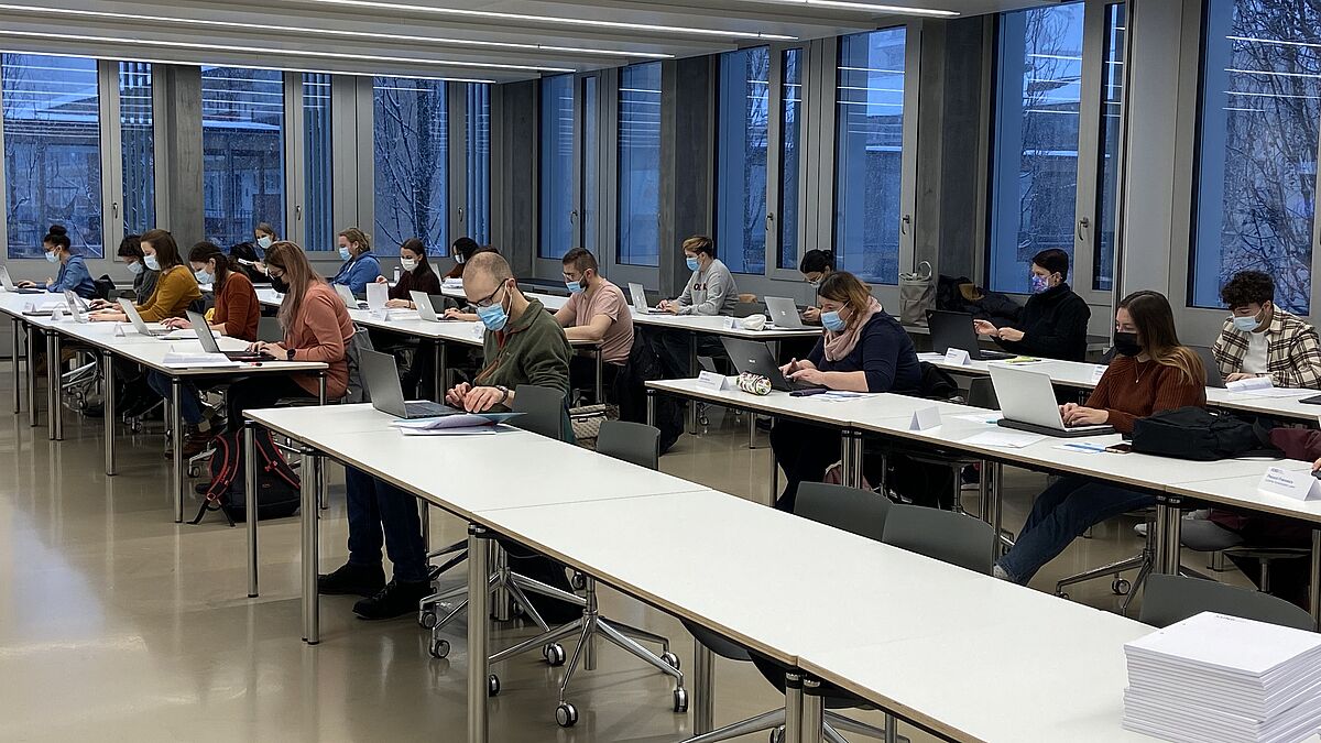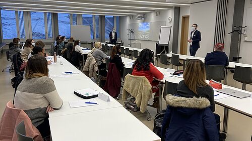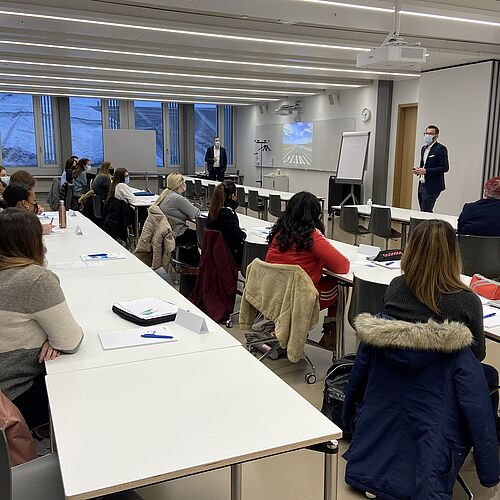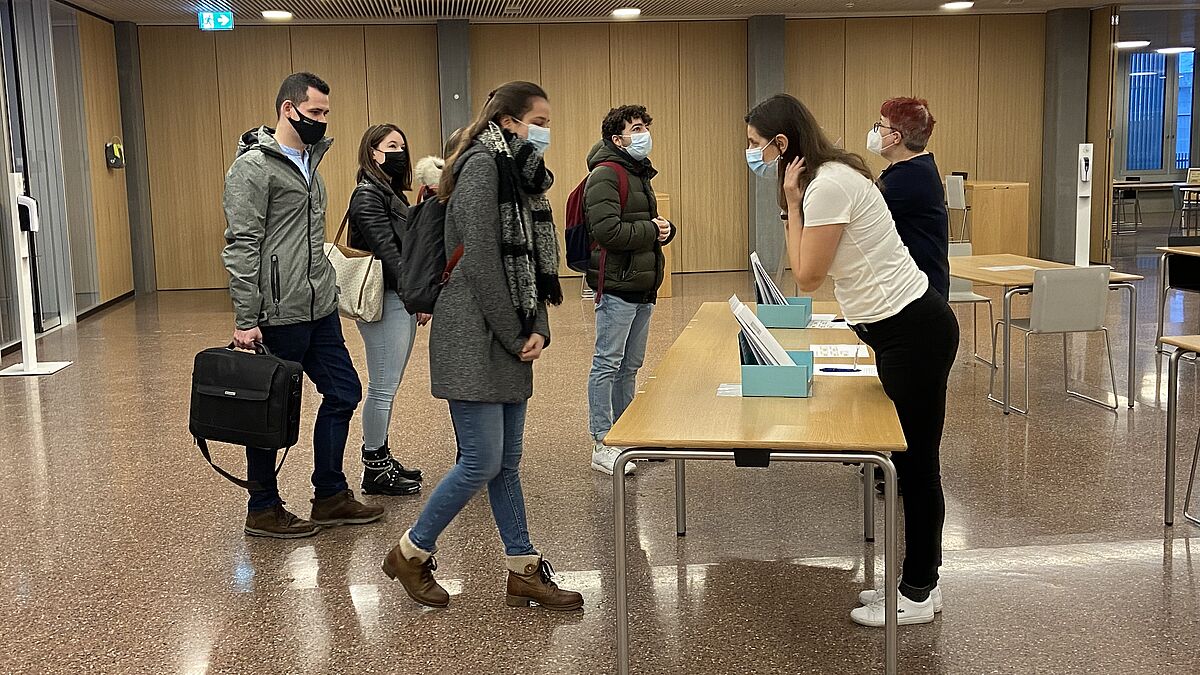 Zumindest zur Begrüssung und Einführung durften sich die neuen Studierenden untereinander kurz physisch begegnen, bereits ab morgen sehen sie sich dann nur noch virtuell im Fernunterricht. Auch Bereichsleiter Pflege HF Andreas Mayer schätzte diesen kurzen, gemeinsamen Moment. Mit einer IT-Einführung, Tipps und Tricks aus den bereits gemachten Erfahrungen im Fernunterricht und einem kurzen Kennenlernen soll den Studierenden den Ausbildungsstart im Fernunterricht bestmöglich erleichtert werden. Denn heute starten nicht nur Fachfrauen und Fachmänner Gesundheit die Ausbildung zur diplomierten Pflegefachperson, sondern auch Bäcker, Coiffeusen, Kauffrauen oder Maler und Carrosserie Lackierer. Auch unterschiedliche Kulturen aus verschiedenen Ländern kommen zusammen.