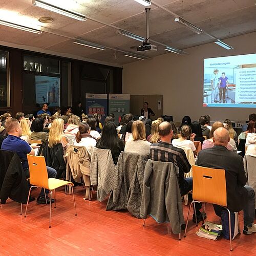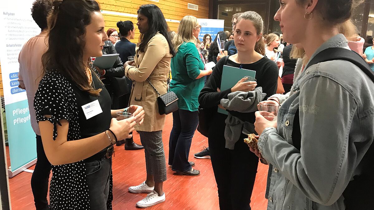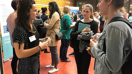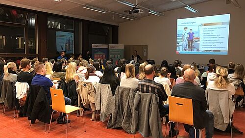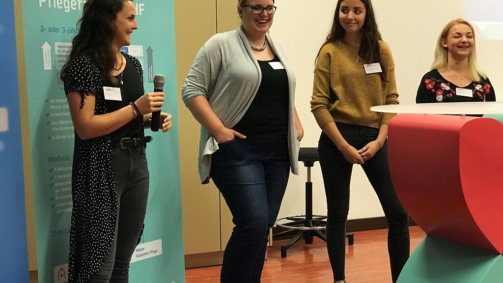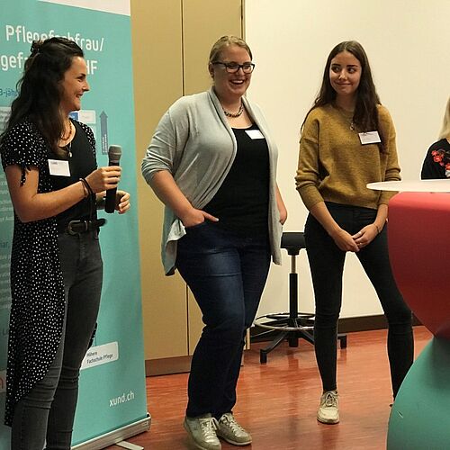 «Im Mittelpunt unserer Arbeit steht der Mensch – egal ob bei der Pflege im Spital, einem Alters- und Pflegezentrum oder in einer Spitex-Organisation», erklärt eine Studierende. «Den Menschen als Ganzes zu sehen und zu verstehen macht uns zu guten Pflegefachpersonen». Das kam während der Informationsveranstaltung, beim Talk mit Studierenden oder im direkten Gesprächen mit den Fachpersonen ebenfalls zum Ausdruck.