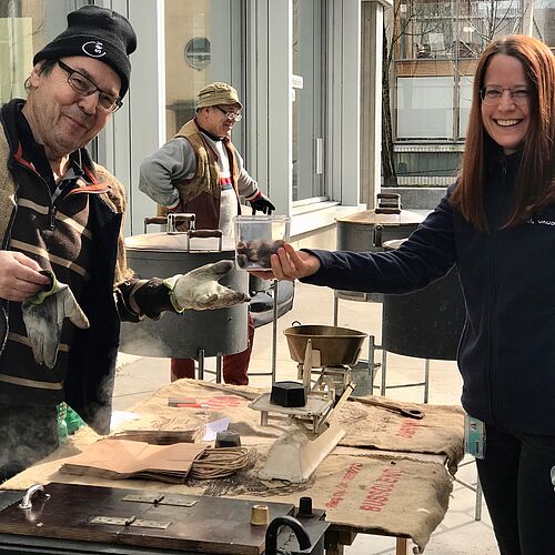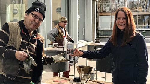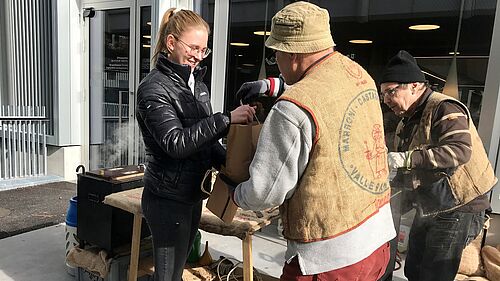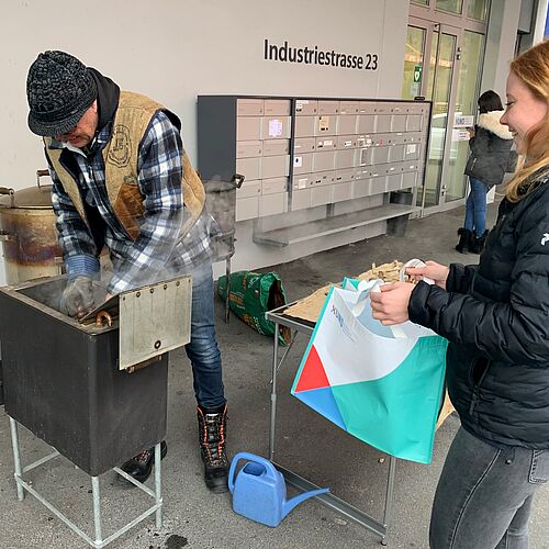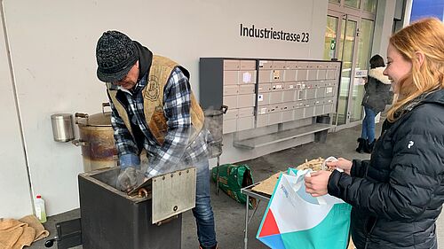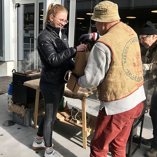 Die feinen Düfte lockten Menschen aus allen Richtungen an. Marronibrater Thomas Arnold musste sie aber vertrösten. «Nein nein, die Marronis können nicht gekauft werden». Denn diese Marronis waren für die Studierenden, Dozierenden, Lernenden und Mitarbeitenden von XUND am Garen. Die heissen und frischen Marronis durften ab dem Mittag in heller und dunkler gebratenen Versionen abgeholt werden. Einige Personen kamen sogar gleich mehrmals, um Nachschub zu holen.