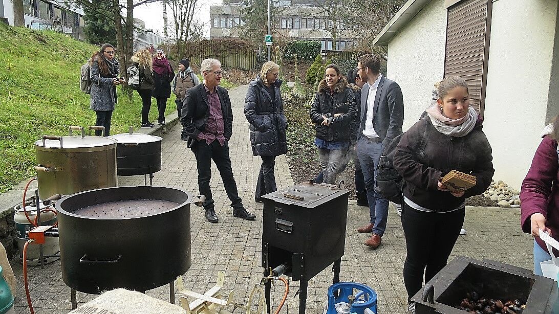 Erste Personen standen schon um 10 Uhr vor den Kochtöpfen von Marronibrater Thomas Arnold. «Nein nein, die Marronis können nicht gekauft werden», musste er einige Personen vertrösten. Die Marronis waren nämlich für die Studierenden, Dozierenden, Lernenden und Mitarbeitenden von XUND am Garen.