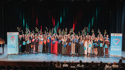 Mit einem Audio-Zusammenschnitt bewegender Stimmen aus der Pflege wurde die Diplomfeier der Pflegefachpersonen HF eröffnet. «Die gehörten Worte hallen nach, sie berühren.», eröffnete Cornelia Koch, Mitglied im Leitungsteam Pflege HF, den Abend. Auf die Frage, welche Worte denn besonders berühren, nannte Rahel Stöckli, Bereichsleiterin Pflege HF: «Mich berührt, dass Pflegende Teil von den Lebensgeschichten von Patientinnen und Patienen werden und ich bin dankbar für das Vertrauen, welches den Pflegefachpersonen entgegengebracht wird.». Zusammen mit Judith Meyer-Albisser, Mitglied Leitungsteam Pflege HF und der Lehrperson Erika Aakti-Ottiger führten Cornelia Koch und Rahel Stöckli durch den Abend. Auch die Diplomierten selbst teilten persönliche Erinnerungen – und berührten mit emotionalen Worten das Publikum.