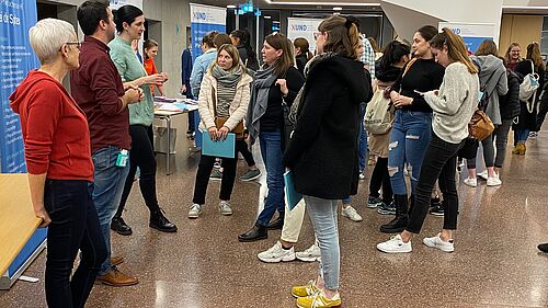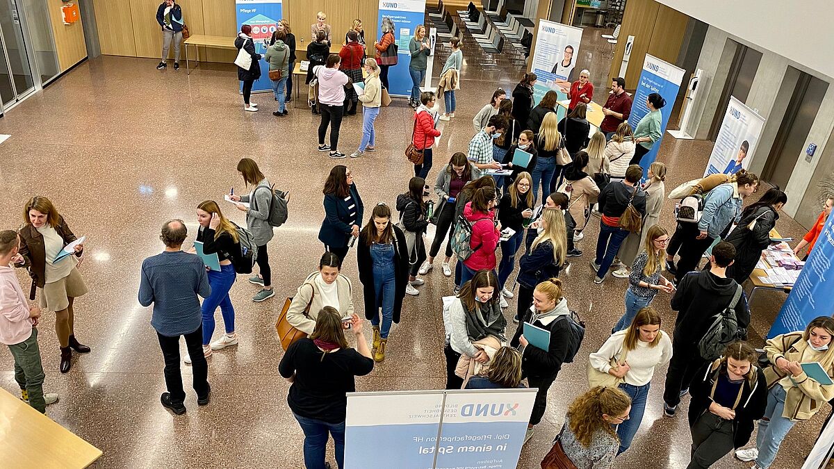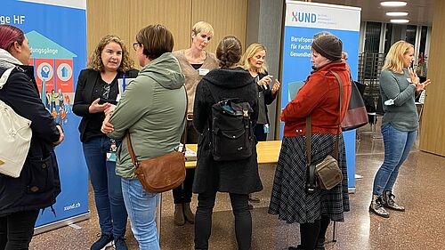 Der zweite Teil der Veranstaltung bot die Gelegenheit, an den Informationsständen die verschiedenen Fachpersonen aus den Arbeitsfeldern Spital, Alters- und Pflegezentren, Spitex und Psychiatrie persönlich zu befragen und so noch detailliertere Informationen zu erhalten.