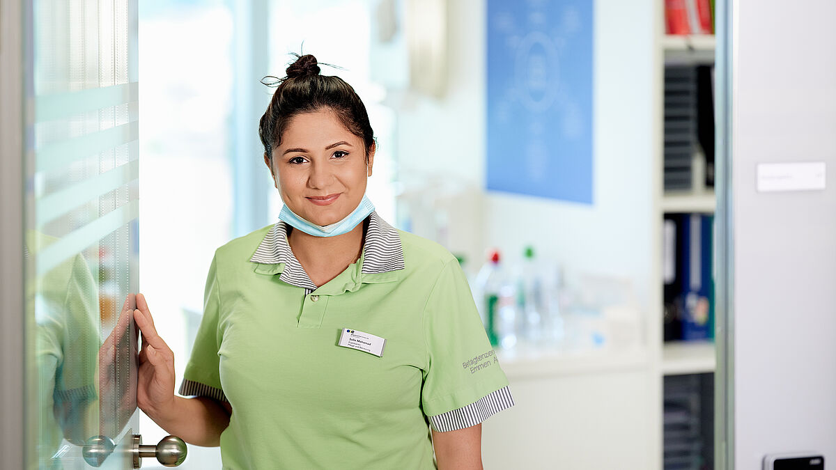 2021 schliesst der nächste Jahrgang das Programm «Perspektive Pflege» ab. Solin Mohamad hat in diesem Jahr mit dem Integrationsprogramm begonnen und absolviert ihr Praktikum ebenfalls im Emmenfeld Betagtenzentrum. Es geht um viel, dies ist der jungen Frau bewusst. Umso mehr Lernbereitschaft und Wille zeigt sie. Die syrische Kurdin ist 21 Jahre jung und hat eine turbulente Lebensgeschichte hinter sich. Mit 17 ist sie aus der Türkei, wohin die staatenlose kurdische Familie zuerst geflohen war, mit den Eltern in die Schweiz gekommen. Ein alterstechnisch schwieriger Moment, ist die Regelschulzeit hierzulande doch vorbei. Deutschkurse, 10. Schuljahr und diverse Schnupperlehren gingen einher mit 300 Absagen für Lehrstellenbewerbungen. Sehr ernüchtert war die junge Frau, wollte nichts mehr machen im Leben. Dann kam sie via Brückenangebot zu XUND und so zur BZE AG. Das Sprachniveau von Solin Mohamad ist bereits beachtlich. Sie möchte die Chance, die sich ihr bei der BZE AG bietet, unbedingt nutzen. Sie ist sehr glücklich hier und voller Zuversicht, dass sie die FaGe-Ausbildung nächstes Jahr in Angriff nehmen werden kann.