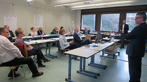 Tobias Lengen, Geschäftsführer OdA XUND, und Jörg Meyer, Direktor Bildungszentrum XUND, begrüssen die Mitglieder des Branchenverbandes Spitex Zentralschweiz und heissen sie herzlich willkommen bei XUND in Luzern. Die beiden nutzen die Gelegenheit, um den Vertreterinnen und Vertretern der verschiedenen Spitexvereine das Aktuelle aus der Welt von XUND zu präsentieren. Neben Informationen zum Neubau, dem Bildungsgang Pflege und den Kernwerten von XUND wird gemeinsam auf das Erreichte der letzten sechs Jahre zurückgeblickt sowie einen Blick auf die Prognosen der Gesundheitsbranche geworfen. Gemeinsam will man die Herausforderungen der Zukunft - mehr Fachkräfte gewinnen - anpacken.
